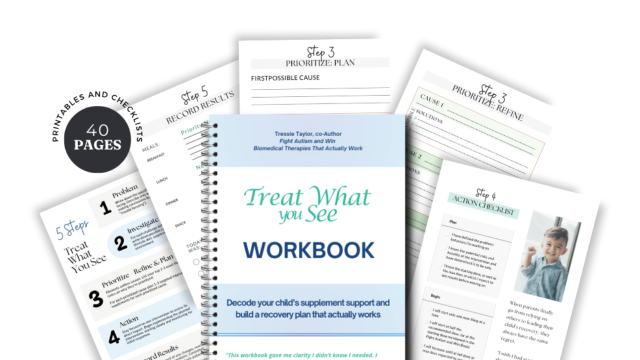 Everything you need to confidently begin: • Fight Autism and Win book • Treat What You See workbook • Digital tracking forms • Two private consults for personalized support Perfect for parents who want to get it right from the beginning.